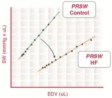 Preload recruitable stroke work (PRSW) is determined by the linear regression of stroke work with the end-diastolic volume. The slope of the PRSW relationship is a highly linear index of myocardial contractility that is insensitive to preload and afterload.