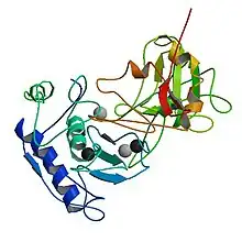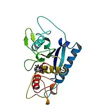 - ↑ Turk, V; Turk, B; Turk, D (2003). "Lysosomal cysteine proteases: facts and opportunities". EMBO J. 20 (17): 4629–4633. doi:10.1093/emboj/20.17.4629. PMC 125585. PMID 11532926.