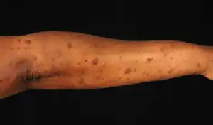 - ↑ Lakshmi SJ, Rao GR, Rao KA, Prasad PG, Kumar YH (2008). "Pruritic papular eruptions of HIV: a clinicopathologic and therapeutic study". Indian Journal of Dermatology, Venereology and Leprology. 74 (5): 501–3. PMID 19052419. Archived from the original on 2020-11-26. Retrieved 2020-12-14.