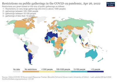 - ↑ Talic, Stella; Shah, Shivangi; Wild, Holly; Gasevic, Danijela; Maharaj, Ashika; Ademi, Zanfina; Li, Xue; Xu, Wei; Mesa-Eguiagaray, Ines; Rostron, Jasmin; Theodoratou, Evropi; Zhang, Xiaomeng; Motee, Ashmika; Liew, Danny; Ilic, Dragan (18 November 2021). "Effectiveness of public health measures in reducing the incidence of covid-19, SARS-CoV-2 transmission, and covid-19 mortality: systematic review and meta-analysis". BMJ. 375: e068302. doi:10.1136/bmj-2021-068302 (inactive 28 February 2022). ISSN 1756-1833. PMID 34789505.