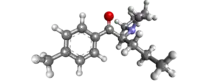 Pyrovalerone (Centroton, 4-Methyl-β-keto-prolintane, Thymergix, O-2371)[2] is a psychoactive drug with stimulant effects via acting as a norepinephrine-dopamine reuptake inhibitor (NDRI). It was developed in the 1980s and had briefly been approved in Spain and France for chronic fatigue or lethargy[3] and as an anorectic or appetite suppressant, but was withdrawn from both markets around 2001 due to safety concerns including problems with abuse and dependence.[4] It is closely related on a structural level to a number of other cathinone stimulants, such as α-PVP, MDPV and prolintane (Promotil, Katovit).