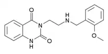 RH-34 is a compound which acts as a potent and selective partial agonist for the 5-HT2A serotonin receptor subtype. It was derived by structural modification of the selective 5-HT2A antagonist ketanserin, with the 4-(p-fluorobenzoyl)piperidine moiety replaced by the N-(2-methoxybenzyl) pharmacophore found in such potent 5-HT2A agonists as NBOMe-2C-B and NBOMe-2C-I. This alteration was found to retain 5-HT2A affinity and selectivity, but reversed activity from an antagonist to a moderate efficacy partial agonist.[2][3][4]