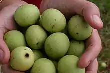 South African legends, recorded as early as the 1830s by naturalist Adulphe Delegorgue, describe elephants seeking out the fermented fruit of the marula tree, and showing signs of intoxication, including increased aggression, after doing so. This behavior was controversially depicted in the 1974 documentary Animals Are Beautiful People: the crew of the film reportedly staged the scene, either by soaking the fruit in alcohol before allowing animals to eat it,[2] or by simply injecting the animals with a veterinary anesthetic to elicit symptoms of intoxication.[3] A 2005 study concluded that it is very unlikely that an elephant could eat enough of the fruit in a day to become drunk; the study instead attributed their aggression to the value of the trees as a food source. Yet it may be possible that another intoxicant is at play – elephants are also known to eat the bark of the tree, which often contains toxic beetle pupae.[4][1]