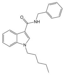 - ↑ Banister SD, Stuart J, Kevin RC, Edington A, Longworth M, Wilkinson SM, Beinat C, Buchanan AS, Hibbs DE, Glass M, Connor M, McGregor IS, Kassiou M (August 2015). "Effects of bioisosteric fluorine in synthetic cannabinoid designer drugs JWH-018, AM-2201, UR-144, XLR-11, PB-22, 5F-PB-22, APICA, and STS-135". ACS Chemical Neuroscience. 6 (8): 1445–58. doi:10.1021/acschemneuro.5b00107. PMID 25921407.
