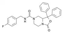 - ↑ Okamura N, Habay SA, Zeng J, Chamberlin AR, Reinscheid RK (June 2008). "Synthesis and pharmacological in vitro and in vivo profile of 3-oxo-1,1-diphenyl-tetrahydro-oxazolo[3,4-a]pyrazine-7-carboxylic acid 4-fluoro-benzylamide (SHA 68), a selective antagonist of the neuropeptide S receptor". The Journal of Pharmacology and Experimental Therapeutics. 325 (3): 893–901. doi:10.1124/jpet.107.135103. PMC 2583099. PMID 18337476.
