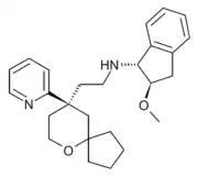 SHR9352 is a drug which acts as a potent and selective biased agonist at the μ-opioid receptor, selective for activation of the G-protein signalling pathway over β-arrestin 2 recruitment. It was structurally derived from oliceridine by replacing the benzylic side chain with a cyclised group, although only some compounds in the series retained the desired biased agonist profile, with some derivatives such as compound 12 being potent, unbiased μ-opioid full agonists.[1]