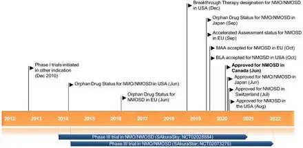 Satralizumab was approved for the treatment of AQP4-IgG-seropositive NMOSD in Canada, Japan, and Switzerland.[17][12]