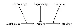 Strategies for engineered negligible senescence (SENS) is a range of proposed regenerative medical therapies, either planned or currently in development, for the periodic repair of all age-related damage to human tissue. These therapies have the ultimate aim of maintaining a state of negligible senescence in patients and postponing age-associated disease.[1] SENS was first defined by British biogerontologist Aubrey de Grey. Many mainstream scientists believe that it is a fringe theory.[2] De Grey later highlighted similarities and differences of SENS to subsequent categorization systems of the biology of aging, such as the highly influential Hallmarks of Aging published in 2013.[3][4]