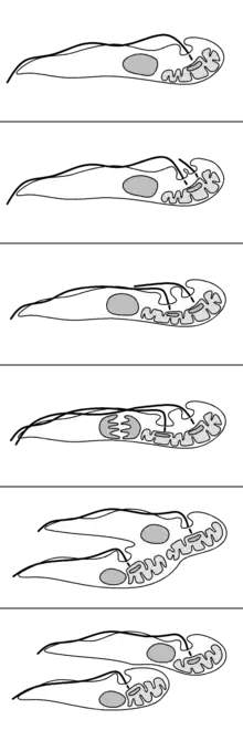 - ↑ Ogbadoyi EO, Robinson DR, Gull K (May 2003). "A high-order trans-membrane structural linkage is responsible for mitochondrial genome positioning and segregation by flagellar basal bodies in trypanosomes". Molecular Biology of the Cell. 14 (5): 1769–1779. doi:10.1091/mbc.E02-08-0525. PMC 165075. PMID 12802053.