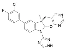 • (3R)-5-(3-chloro-4-fluorophenyl)-3-methyl-3-(pyrimidin-5-ylmethyl)-1-(1H-1,2,4-triazol-3-yl)-1,3-dihydro-2H-indol-2-one