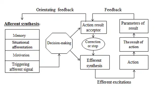 - The formation of action result acceptor (creating the ideal image and its retention goals, presumably, at the physiological level is circulating in the ring interneuron excitation)
