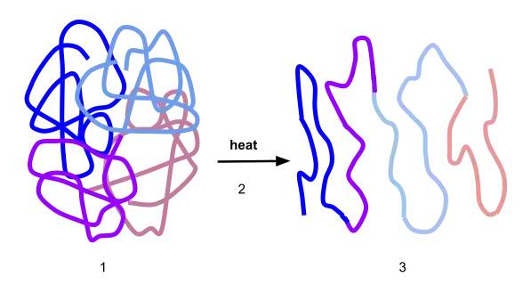 Knowledge of an enzyme's resistance to high temperatures is especially beneficial in protein purification. In the procedure of heat denaturation, one can subject a mixture of proteins to high temperatures, which will result in the denaturation of proteins that are not thermostable, and the isolation of the protein that is thermodynamically stable. One notable example of this is found in the purification of alkaline phosphatase from the hyperthermophile Pyrococcus abyssi. This enzyme is known for being heat stable at temperatures greater than 95 °C, and therefore can be partially purified by heating when heterologously expressed in E. coli.[12] The increase in temperature causes the E. coli proteins to precipitate, while the P. abyssi alkaline phosphatase remains stably in solution.
