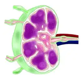 Acute toxoplasmosis is often asymptomatic in healthy adults.[13][14] However, symptoms may manifest and are often influenza-like: swollen lymph nodes, headaches, fever, and fatigue,[15] or muscle aches and pains that last for a month or more. It is rare for a human with a fully functioning immune system to develop severe symptoms following infection. People with weakened immune systems are likely to experience headache, confusion, poor coordination, seizures, lung problems that may resemble tuberculosis or Pneumocystis jiroveci pneumonia (a common opportunistic infection that occurs in people with AIDS), or blurred vision caused by severe inflammation of the retina (ocular toxoplasmosis).[15] Young children and immunocompromised people, such as those with HIV/AIDS, those taking certain types of chemotherapy, or those who have recently received an organ transplant, may develop severe toxoplasmosis. This can cause damage to the brain (encephalitis) or the eyes (necrotizing retinochoroiditis).[16] Infants infected via placental transmission may be born with either of these problems, or with nasal malformations, although these complications are rare in newborns. The toxoplasmic trophozoites causing acute toxoplasmosis are referred to as tachyzoites, and are typically found in bodily fluids.[17][18]