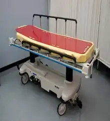 Transfer board (red) on a stretcher