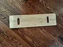 A transfer board, sliding board or slider board is a device designed for helping those with a physical disability to move from one surface (like bed) to another (like wheelchair). For safe use of a transfer board, the person who is being transferred should be able to participate in the move by sliding over the transfer board, there should be some cushioning in the buttock area for safe transfer.[1][2]