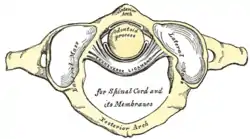 The ligament attaches on either side onto a small yet prominent tubercle upon the medial aspect of either lateral mass of atlas.[1]