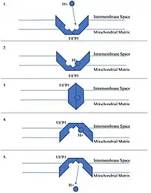 - 1 2 Crichton, Paul G.; Lee, Yang; Kunji, Edmund R. S. (2017-03-01). "The molecular features of uncoupling protein 1 support a conventional mitochondrial carrier-like mechanism". Biochimie. UCP1: 40 years and beyond. 134: 35–50. doi:10.1016/j.biochi.2016.12.016. ISSN 0300-9084. PMC 5395090. PMID 28057583.