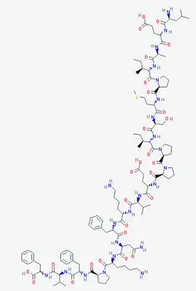 VIR-576 is an experimental drug that is under clinical trials for the treatment of HIV-1 infections. VIR-576 is synthetic peptide that binds to HIV-1's hydrophobic fusion peptide gp41, preventing the virus from inserting itself into a host cell's membrane to initiate an infection.[1] This drug is a synthesized variant of a highly specific natural entry inhibitor designated as VIRIP (virus-inhibitory peptide).[2]