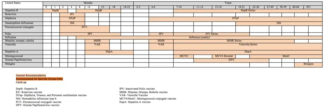 - ↑ "Immunization Schedules". Centers for Disease Control and Prevention. Retrieved 12 April 2016.