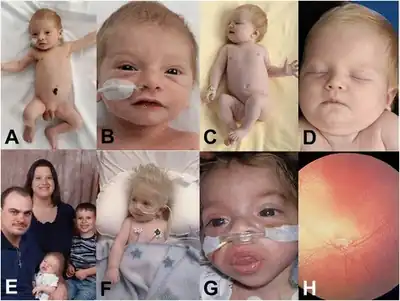 Infections of the gastrointestinal and urinary tracts are common. Swallowing and feeding difficulties early on may result in a failure to thrive. Optic nerve hypoplasia, nystagmus and photophobia may occur. Facial dysmorphism (cleft lip/palate and micrognathia) and syndactyly may be present. Sensorineural hearing loss may also be present.