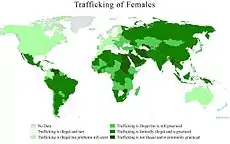 Human trafficking refers to the acquisition of persons by improper means such as force, fraud or deception, with the aim of exploiting them.[64] The Protocol to Prevent, Suppress and Punish Trafficking in Persons, especially Women and Children states,[65]