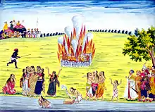 Sexual "cleansing" is a ceremony where girls have sexual intercourse as a cleansing ritual following their first menstruation[68] and is referred to as kusasa fumbi in some regions of Malawi.[69] Prepubescent girls are often sent to a training camp where women known as anamkungwi, or "key leaders," teach the girls how to cook, clean, and have sexual intercourse in order to be wives.[70] After the training, a man known as a hyena performs the cleansing for 12- to 17-year-old females for three days and the girl is sometimes required to perform a bare-breasted dance, known as chisamba, to signal the end of her initiation in front of the community.[71]