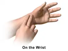 - ↑ Vorvick L. "Pulse". MedlinePlus. U.S. National Library of Medicine. Retrieved 23 January 2011.