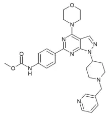 - ↑ Yu K, Toral-Barza L, Shi C, Zhang WG, Lucas J, Shor B, et al. (August 2009). "Biochemical, cellular, and in vivo activity of novel ATP-competitive and selective inhibitors of the mammalian target of rapamycin". Cancer Research. 69 (15): 6232–40. doi:10.1158/0008-5472.CAN-09-0299. PMID 19584280.