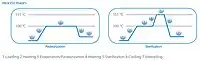 The precise conditions needed to achieve pasteurization and sterilization are controlled by a programmable logic controller (PLC) in millisecond intervals. This level of control in modern units has allowed for the simplification of autoclave technology to the point where heavy and potentially dangerous pressure vessels are not needed, and sterilization conditions are reached by depressing the conversion cell and continuing to evaporate moisture from the product under negative pressure. The result is a statistically safer and more reliable machine, which is also smaller and lighter than older autoclaves.