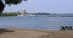 The water supply of Montréal is taken from lac Saint-Louis, lac des Deux-Montagnes, Rivière des Prairies and the St. Lawrence River. This water is then treated in seven plants with a daily capacity of 2,917,000 m³ for 1.8 million residents and industries, businesses and institutions. The river receives untreated liquid waste from metropolitan Montreal and the newly developed suburbs by way of over 150 discharge outlets. Whenever there is significant rainfall on the island of Montreal, household sewage is mixed with the city street rainwater and discharged untreated into the river.[28][29] The Rivière des Prairies used to receive massive discharges of untreated waste water from the city, turning it into essentially an open sewer; however, ecological intervention and modern waste water treatment mostly reversed the damage and the river is often considered clean by the RSMA(Réseau de suivi du milieu aquatique), and suitable for swimming. A CAN$10 billion investment program is underway in Montreal to upgrade water treatment plants, to replace ageing water pipes and to install roughly 23,000 meters for industries, businesses and institutions until 2013.[30]