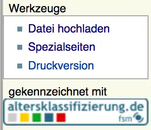 - SELFHTML-Wiki: Altersklassifikation, Stand: 6. Februar 2017, Lizenz: „CC-BY-SA 3.0 (de)“