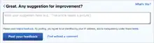 - Title: 'Help improve this article' (instead of earlier titles: 'What do you think?' or 'Share your feedback')