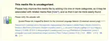 This warning provides no direct way to add a category. The user needs to follow the "how?" link, read a long guide to learn how to solve the issue with little support from the system.