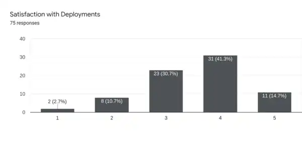 - Relatedly, there were a few respondents that noted more frequent deploys may be hindered by blocker issues arising in production.