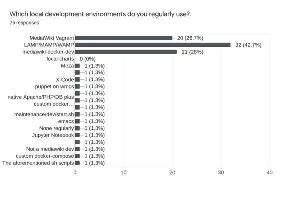 - Some people need a complex environment that is more like production, and they almost equally selected LAMP or Vagrant to accommodate those needs.