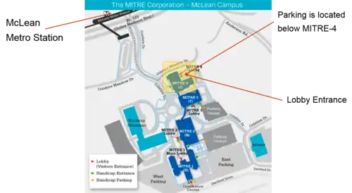 Parking is available below the MITRE-4 building. |