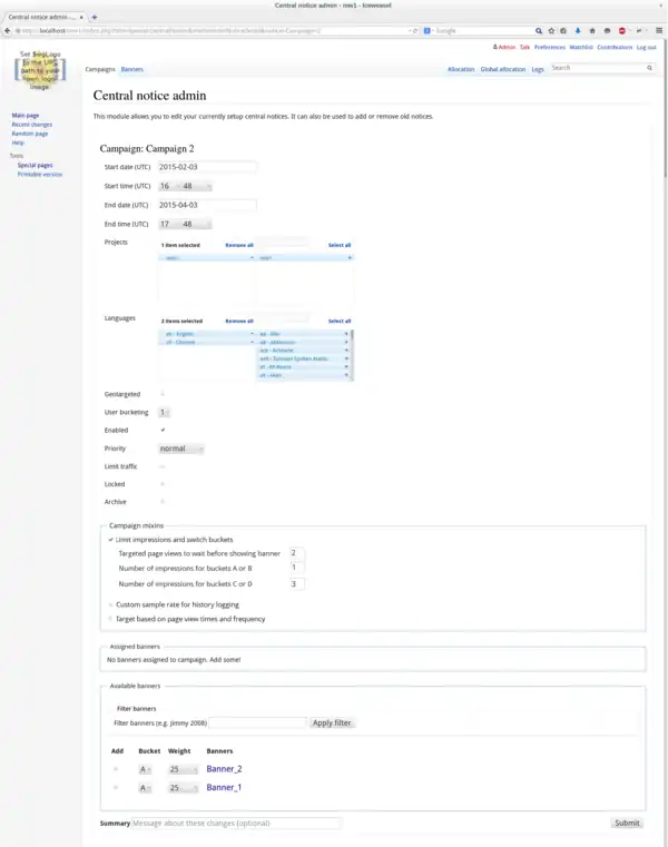 In this layout, controls for campaign-associated Mixins would have their own area just above controls for banners. The available parameters for each Mixin would show or hide dynamically when the Mixin is selected or unselected.