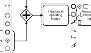 - Click on the angular arrow below the magnifier to jump to the wiki page that represents the BPMN element.