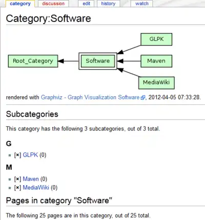 The Graphical Category Browser extension shows the interconnection of categories as a graph enhances navigability of the site.
