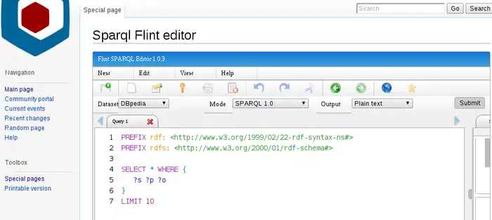- Special page: Flint Editor (a historic/old SPARQL editor)
