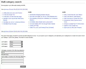 | Description | Extension introduces a new special page Special:MultiCategorySearch, that allows users to find pages that are included in several specified categories at once. |
