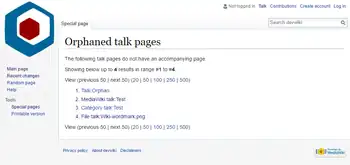 $wgMiserModeis enabled, the results will be served from cache. - The special page may report talk pages as orphaned when they are not. The most common situation where this happens is File talk pages when