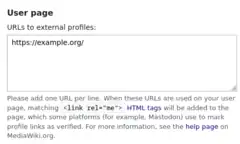 The RealMe allows verifying URLs used on user and other wiki pages. The initial implementation is focused on using rel="me" verification for services using it like Mastodon.
