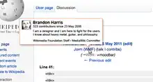 Users of modern web sites have come to expect the ability to provide degrees of identity and personalization to their experience. While MediaWiki allows a degree of personalization (through preferences and gadgets), it does not provide easy-to-use and understand mechanisms for displaying identity.