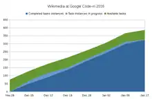 Google Code-in 2016 is over. 424 Wikimedia tasks (100 of them "get onto IRC" tasks) were successfully completed thanks to 192 students and 46 mentors. Thanks everybody!