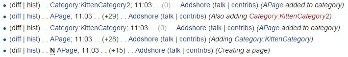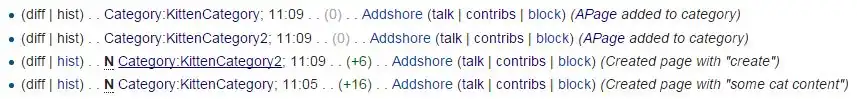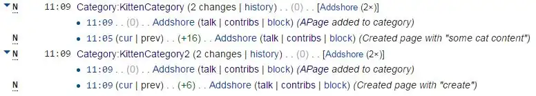 Catwatch is a MediaWiki feature that tracks category membership changes. It is possible to view these changes in the recent changes and watchlists.