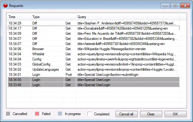 The requests form shows all of the requests that have been made by Huggle. The requests that are at different stages are shown in different colors.
