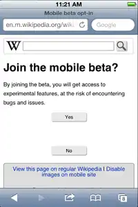 - "Wikipedia is working on a new mobile site! Would you like to test it?"