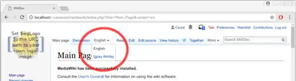 You will then see a drop down menu for selecting a language variant (assuming that $wgDisableLangConversion = false, which is the default). You can pick Pig Latin (Igpay Atinlay) here.