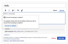Yesterday, 5 August, the Source mode toolbar that was introduced as an opt-in setting in May, became available to all people who have the New Discussion Tool enabled. Note: you can still turn this toolbar off if you would like within Special:Preferences.